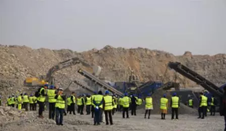 工地參觀(guān)也是此次論壇的重要環(huán)節(jié)。全體嘉賓來(lái)到山東淄博依廠(chǎng)礦業(yè)的石灰石采石場(chǎng),近距離了解克林曼移動(dòng)式破碎篩分設(shè)備的性能及生產(chǎn)出的骨料質(zhì)量。