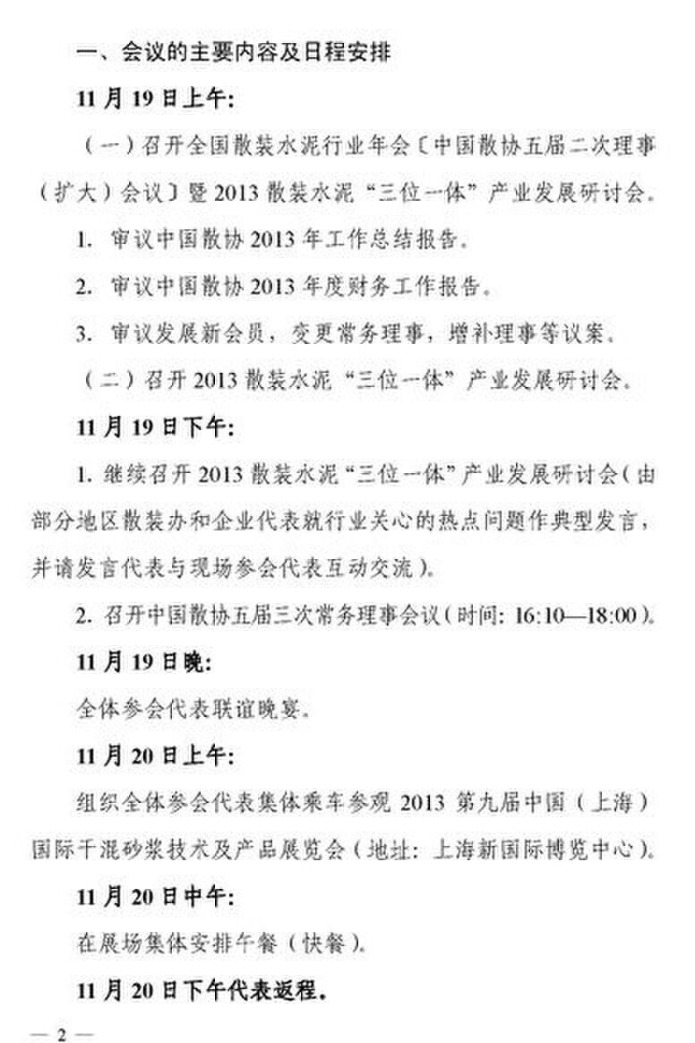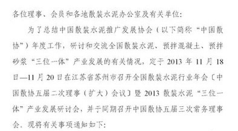 摘要:關(guān)于召開全國(guó)散裝水泥行業(yè)年會(huì)暨2013散裝水泥“三位一體”產(chǎn)業(yè)發(fā)展研討會(huì)的通知
