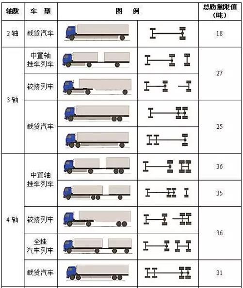 按照《道路車輛外廓尺寸、軸荷及質量限值》確定的最大質量限值作為認定標準。其中,最大的變化是6軸車由55噸變?yōu)?9噸。