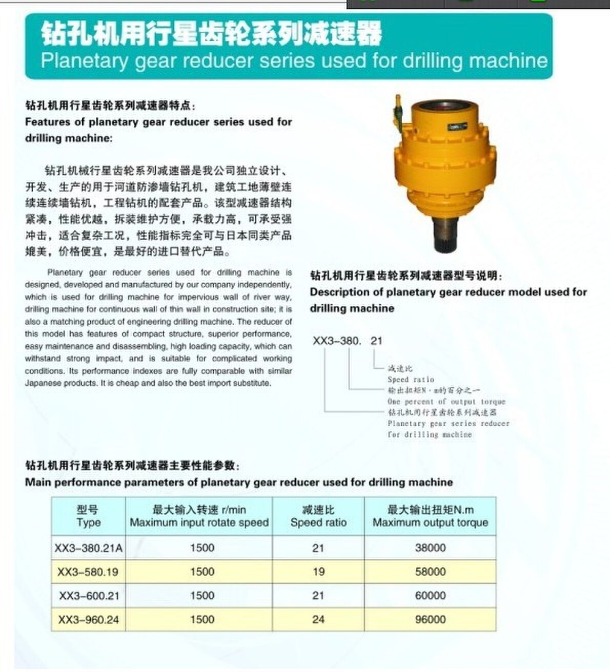 XX系列鉆孔機(jī)用行星齒輪減速器
