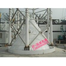 3、用吊車把水泥倉立起平穩(wěn)地移動到基礎上,檢測倉體的垂直度、誤差越小越好,然后與基礎板相連,用焊接機焊接牢固。并用加強筋板把四條腿加固好。注意事項:在立罐之前,一定要把螺絲上緊,焊接要焊接牢固,倉體垂直度上下誤差不大于1公分。在吊裝期間注意高空電線注意人員安全。