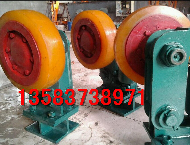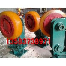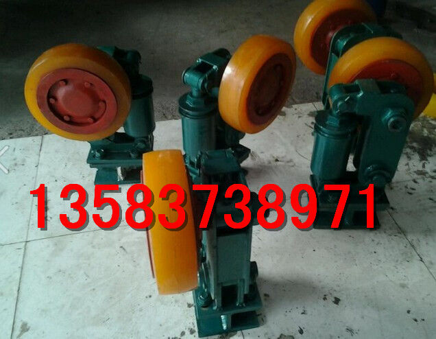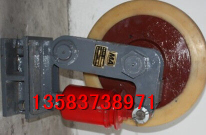 滾輪罐耳裝置 滾輪罐耳 罐耳滾輪導向裝置 L250滾輪罐耳 L300滾輪罐耳滾輪罐耳(又名滾輪導向裝置)是提升容器(罐籠或箕斗)的組成部分,它起導向和緩沖作用。是確保提升容器沿導軌平穩(wěn)運行的關鍵所在。一,主要機構及特點:滾輪罐耳主要由輪軸、支架、緩沖裝置、底座等組成。二,主要特點:輪軸采用橡膠密封語機械密封相結合的組合密封方式,膠圈采用高耐磨材料,安全可靠,壽命長。1.支架擺動銷軸裝有高分子耐磨軸套,使用中不產生松動現象。2.緩沖裝置采用符合彈性體緩沖結構,性能穩(wěn)定,免維護。3.可用緩沖裝置來方便的調整滾輪與罐道間的位置。4.表面防范采用鍍鋅刷漆新工藝,防腐防銹性能好。三、其他說明滾輪罐耳由中間布置一個,左右側各一個組成一組滾輪罐耳可根據用戶要求進行設計