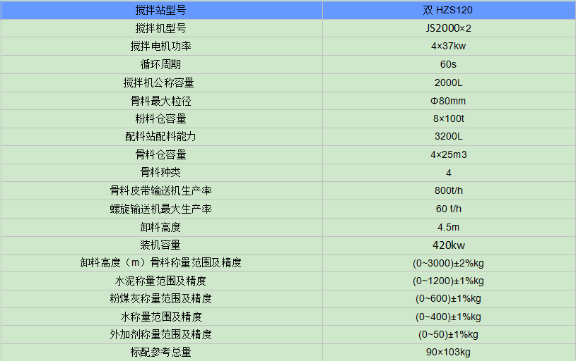 雙HZS120大型混凝土攪拌站技術參數