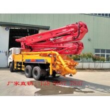 上裝配置:四節(jié)臂垂直高度三十一米,采用高強(qiáng)鋼材料,混凝土輸送缸1600mm,主油泵韓國川崎200或力士樂190,50料斗,臂架為紅色,底座為黃色。