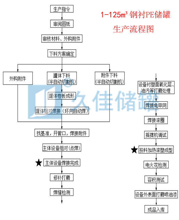 100立方鋼襯塑儲(chǔ)罐 久佳牌 三氯化鐵儲(chǔ)罐廠家生產(chǎn)工藝介紹