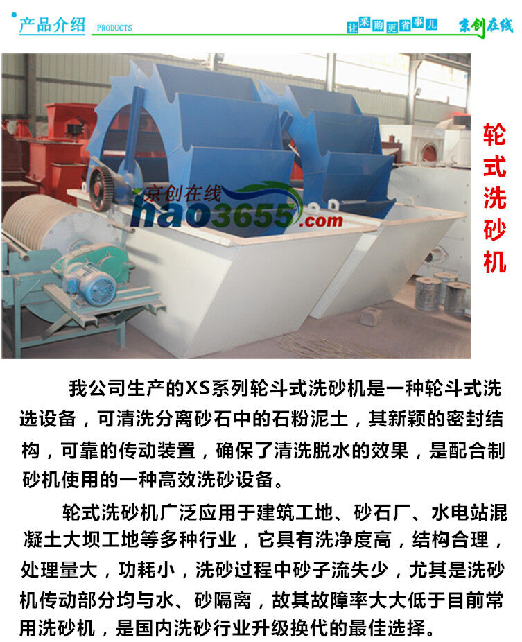 XS系列輪斗式洗砂機是人工砂(包括天然砂)的洗選設(shè)備