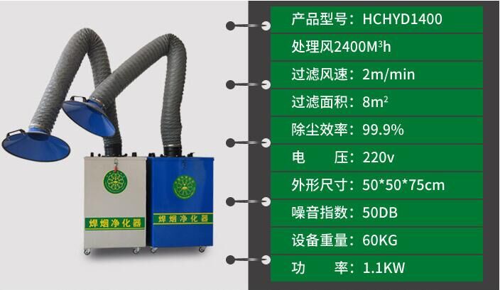 2. 利用可360度隨意活動(dòng)的萬(wàn)向臂,可從煙氣發(fā)生處吸除煙氣,大大提高了煙氣的收集率,保證了作業(yè)人員的健康。