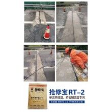 搶修寶RT-2,修補完成后2-4小時即可恢復交通,2小時的抗壓強度為40以上,抗折強度和粘接強度都是原先水泥的5--10倍,施工后峰值抗壓強度可達到60MPa以上。修補完成后嚴絲合縫,顏色和水泥顏色一致。使用搶修寶新型修補料施工是性價比高的一種方法,對交通的影響較小,成本較低,是修補橋梁伸縮縫病害的好材料。
