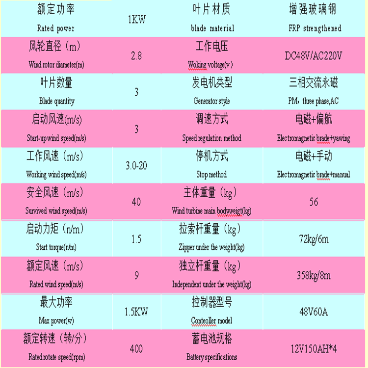 2)           風輪:采用3葉片,發(fā)光材料,層流翼型,升阻比高,性能優(yōu)良。葉片選用玻璃鋼,纖維,具有內阻尼大、動態(tài)特性好、韌性好,使用可靠不變形。風輪與發(fā)電機采用柔性連接,運行平穩(wěn)無震動、噪音小。