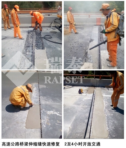 養(yǎng)護人員到達現(xiàn)場,對破損混凝土進行鑿除,將伸縮縫內(nèi)部斷裂的鋼筋電焊連接好,然后將搶修寶材料按照一定的水灰比攪拌均勻,澆筑于伸縮縫坑槽內(nèi),用振搗棒進行適當振搗,然后迅速收面,初凝后,開始灑水養(yǎng)生,2小時后,完全可以通行。目前,所有路段均已施工修復完畢。產(chǎn)品品質(zhì)以及材料實用性獲得了局領(lǐng)導以及養(yǎng)護工人的一致好評。