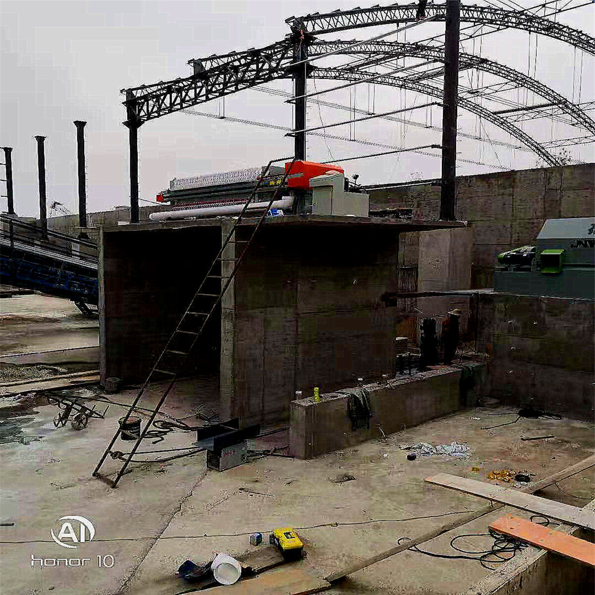 2、壓濾機(jī)機(jī)架整體為鋼結(jié)構(gòu),機(jī)架主梁、壓緊板、止推板、油缸座焊接后加工處理,再做防腐和油漆。
