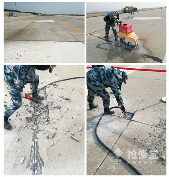 【搶修寶】機(jī)場(chǎng)道面專(zhuān)用特材,專(zhuān)用于機(jī)場(chǎng)跑道、停機(jī)坪等快速修補(bǔ)及整體換板工程,通航時(shí)間快、1-2小時(shí)強(qiáng)度可達(dá)30MPA以上,強(qiáng)度高、耐磨性強(qiáng)、防腐蝕抗凍融性好,不受環(huán)境溫度限制,零下15度至高溫45度都可正常使用。