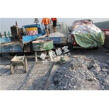 由于時間要求快,應(yīng)采用混凝土特種材料進(jìn)行搶修,路橋養(yǎng)護(hù)特材——搶修寶RT-2,30分鐘速凝,2小時可通行,早期強(qiáng)度高、后期強(qiáng)度不倒縮,粘結(jié)能力強(qiáng),是治理橋梁路面鋪裝層病害常備的特種建材,采用風(fēng)鎬對鋪裝層病害進(jìn)行清除,破碎時注意水平方向分離鋪裝層與梁板,不能影響梁板的狀態(tài)和質(zhì)量,對梁板頂要清除整潔,用氣泵或高壓水對梁板頂進(jìn)行沖洗,不積水不滲漏的情況下,采用搶修寶RT-2特種水泥與標(biāo)準(zhǔn)石子按照要求配比,加水?dāng)嚢?,迅速澆注到病害部位,抹至與路面齊平時,灑水量水進(jìn)行收光,指甲掐不動混凝土?xí)r進(jìn)行養(yǎng)護(hù),2小時后即可通行。避免大面積換板,降低了工程成本。施工無需動用大型機(jī)械,對交通安全影響不大。