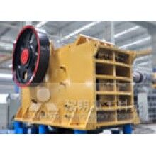 電動(dòng)機(jī)驅(qū)動(dòng)皮帶和皮帶輪,通過(guò)偏心軸使動(dòng)鄂前后上下擺動(dòng),當(dāng)動(dòng)鄂推動(dòng)動(dòng)鄂板向定鄂板運(yùn)動(dòng)時(shí),物料被壓 碎或劈碎。當(dāng)動(dòng)鄂和動(dòng)鄂板在偏心軸、彈簧的作用下后退時(shí),先前已被壓碎或劈碎的物料從鄂板的下部排料口排出。隨著電動(dòng)機(jī)連續(xù)轉(zhuǎn)動(dòng)而破碎機(jī)動(dòng)鄂作周期性地壓 碎和排泄物料,實(shí)現(xiàn)批量生產(chǎn)。