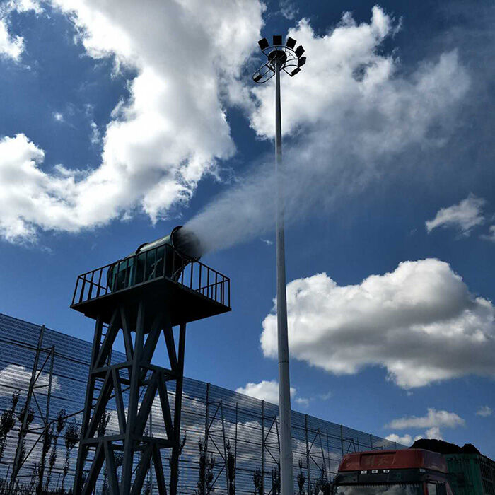 霧炮機(jī)降塵系統(tǒng)是用噴嘴將水霧化好之后,噴灑在灰塵較多的起源地,干燥的灰塵在空中慢慢加濕,而且水霧細(xì)小在空氣中懸浮時(shí)間會(huì)長(zhǎng)一些,能有效的控制粉塵的發(fā)生。