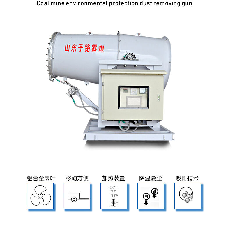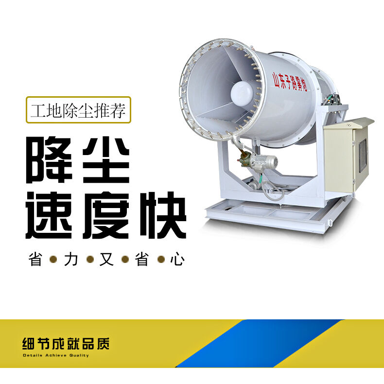 子路環(huán)??萍加邢薰疽豢钔ㄟ^高壓風(fēng)機(jī)將儲存的水壓縮成灰塵大小,在利用不銹鋼噴嘴部位將水霧化吹向高空凈化空氣的一種新型環(huán)保除塵產(chǎn)品。這款產(chǎn)品名字叫高射程霧炮機(jī),