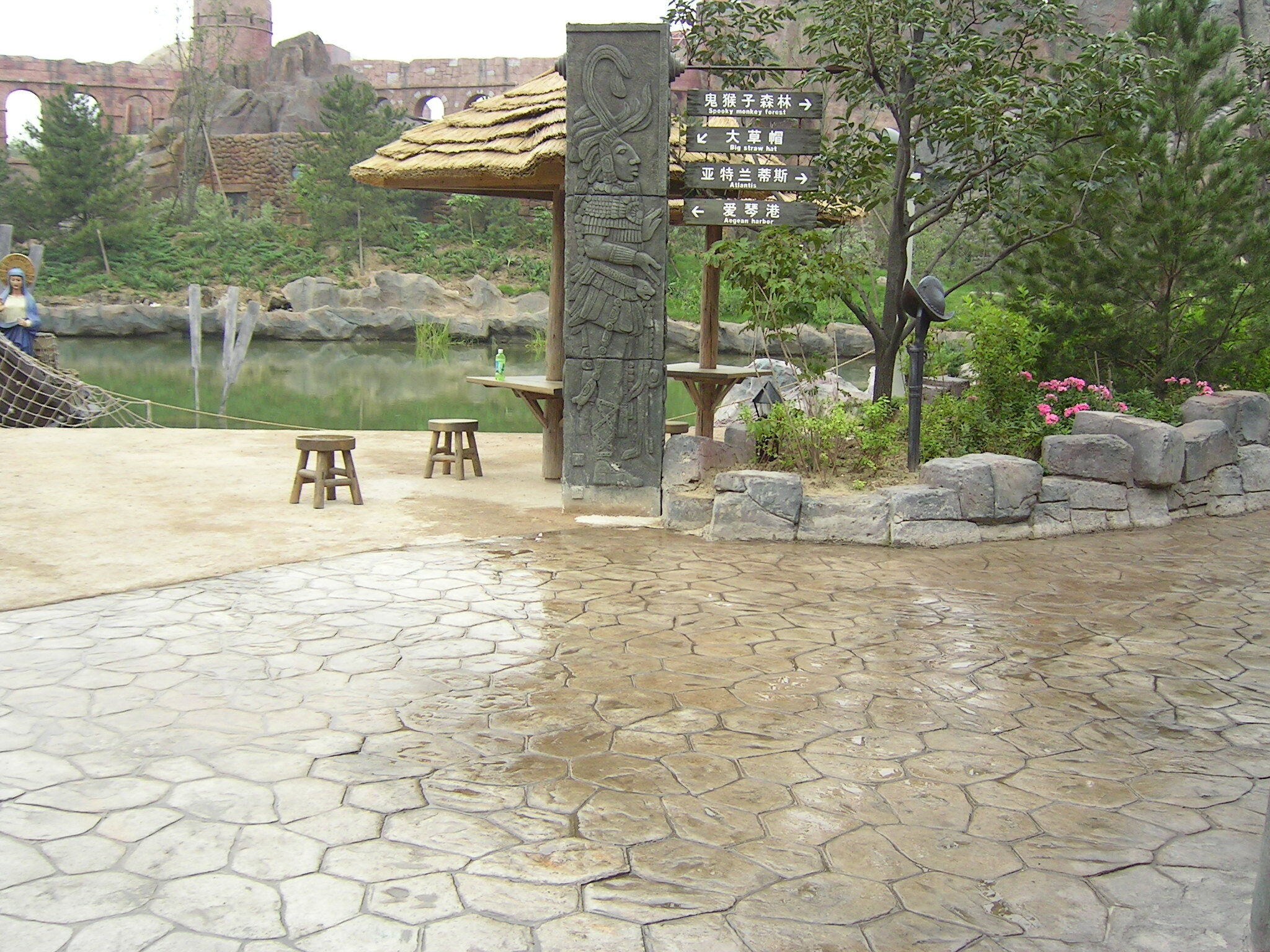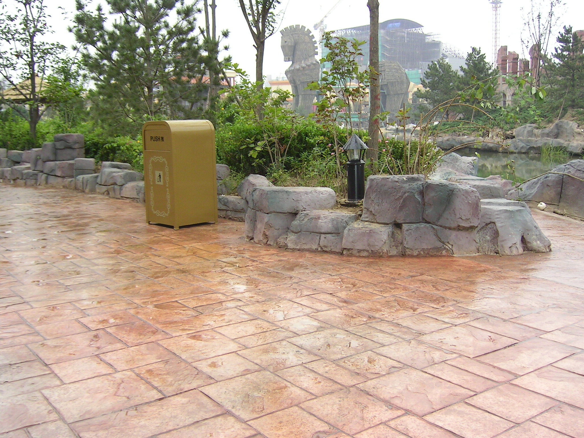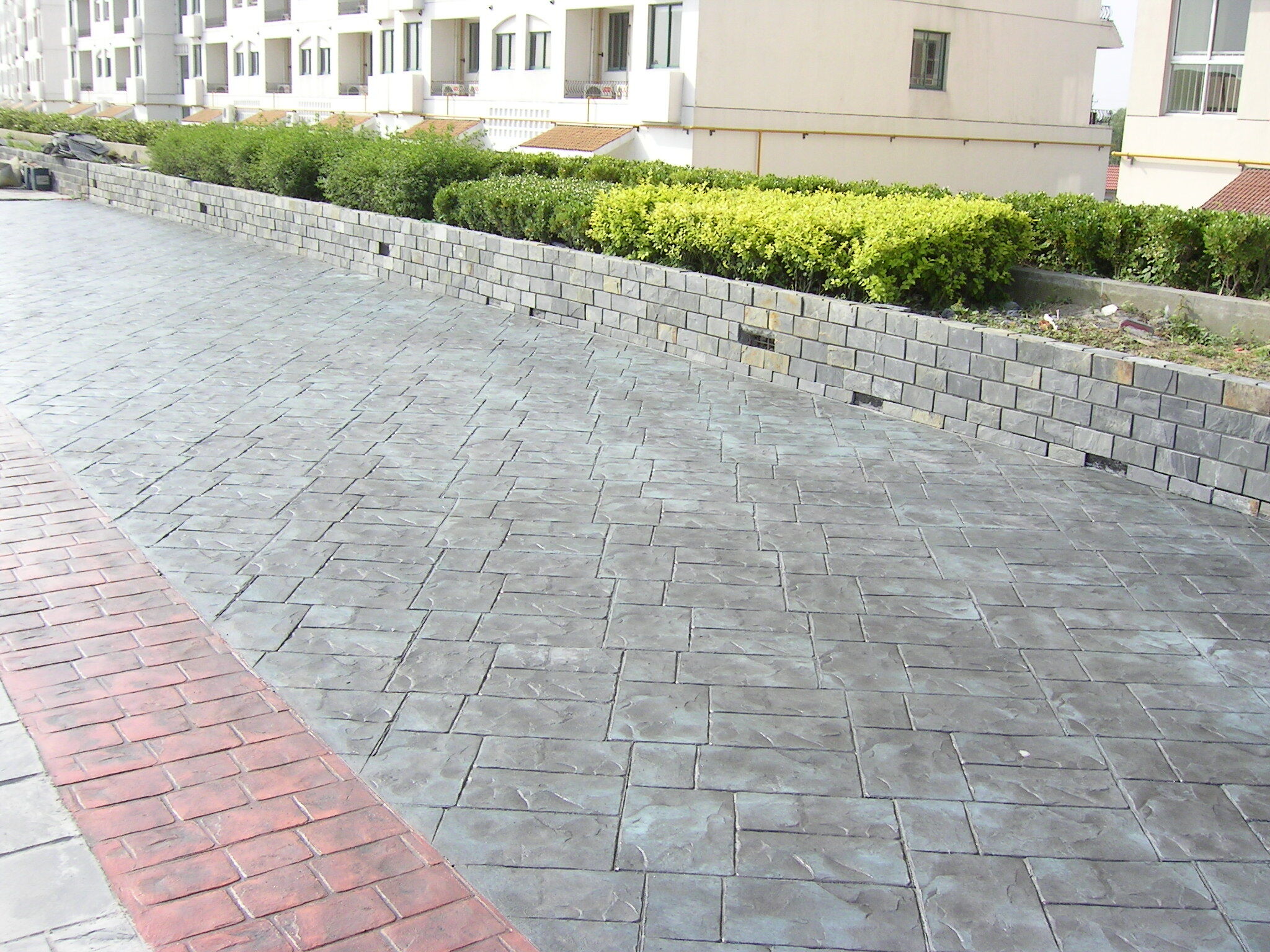 彩色壓模藝術(shù)地坪是一種新穎獨創(chuàng)的地面鋪裝體系??稍趥鹘y(tǒng)的砼材料上制作各種磚、石、木等其它材料無法達到的裝飾效果,具有圖形美觀自然、色彩豐富、質(zhì)地堅固耐用等特點,克服了傳統(tǒng)磚、石鋪設地面常有的容易松動、高低不平、縫隙長草、蟲蟻筑穴、容易起塵、路面整體性差、色彩單調(diào)、需經(jīng)常維修等特點,結(jié)合了傳統(tǒng)磚、石鋪設地面的美觀自然與砼的堅固耐用特點,是替代磚石鋪設路面的一種新型地面材料。