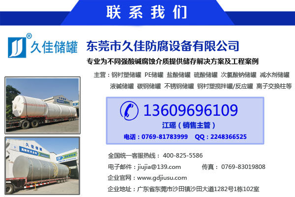 找質(zhì)量上乘、服務(wù)一流的鋼襯塑樹(shù)脂罐攪拌罐供應(yīng)商,選東莞市久佳防腐設(shè)備有限公司,公司是華南地區(qū)知名的防腐鋼襯塑攪拌罐生產(chǎn)廠家,引進(jìn)國(guó)外先進(jìn)的技術(shù)設(shè)備以及滾塑工藝,品質(zhì)保證。生產(chǎn)的防腐攪拌罐、鋼襯塑儲(chǔ)罐具有無(wú)焊接縫、不滲漏、耐腐蝕,抗老化,抗沖擊,表面光滑結(jié)合力強(qiáng)。對(duì)一般酸堿鹽的有機(jī)溶劑性能良好,適用于腐蝕性氣體,液體及固體液,漿液介質(zhì)的攪拌以及儲(chǔ)存輸送。