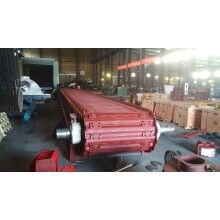 2)由于驅(qū)動部分為懸掛式,從而減少了產(chǎn)生的安裝誤差,大幅度提高了傳動系統(tǒng)的使用壽命。另外本設(shè)備也可根據(jù)用戶要求采用液壓馬達驅(qū)動的傳動方式。這種傳動方式可實現(xiàn)物料輸送速度的平穩(wěn)改變。