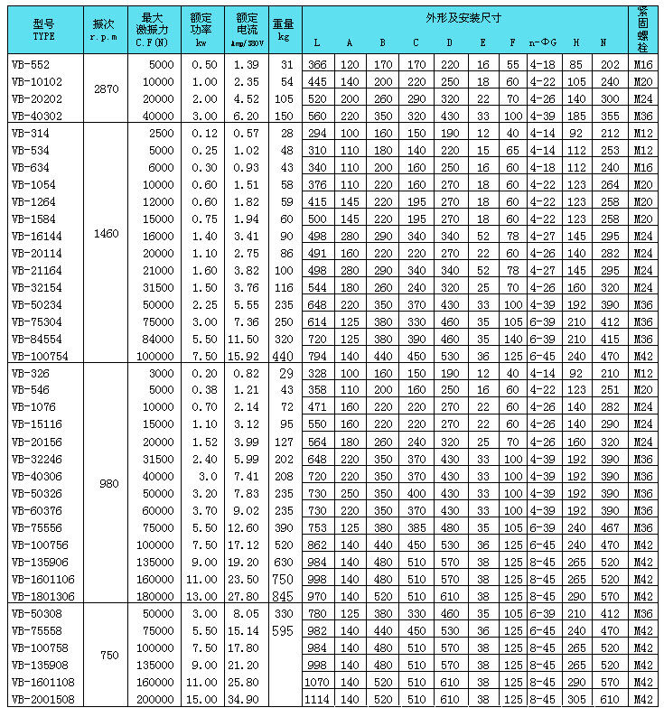 VB-1264-W振動(dòng)電機(jī)外形安裝尺寸技術(shù)參數(shù)表