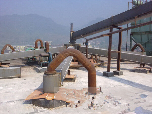 進(jìn)料溜管:為減少進(jìn)料口下透氣層局部磨損用的緩沖板,在安裝現(xiàn)場可按安裝總圖繪出的入料管位置,和入料溜板施工圖中的尺寸鉆孔固定。