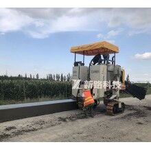 該設(shè)備采用三履帶行走驅(qū)動,水泥混凝土經(jīng)過輸料裝置,進(jìn)入成型模具,然后通過振動棒振動和模具擠壓,一次攤鋪成型用戶需要的水泥結(jié)構(gòu)物。通過更換模具及對車輛和模具狀態(tài)的精確調(diào)整和控制可以實現(xiàn)各類路緣石、硬路肩、防撞墻、公路中央分隔帶、水溝/匯水槽/排水槽、下水道及安全環(huán)島等不同輪廓水泥混凝土結(jié)構(gòu)物的精準(zhǔn)鋪筑。