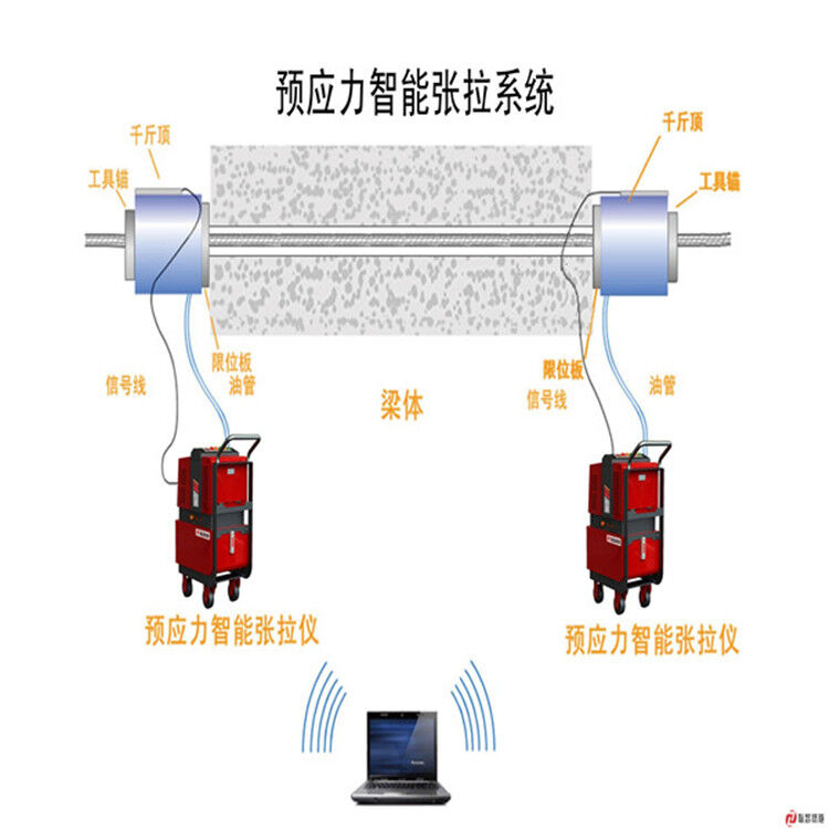 ZL-1000型預應力全自動張拉系統(tǒng)主要是為滿足各種公路、橋梁等工程建設中預應力梁張拉而設計的。系統(tǒng)由2臺千斤頂,2臺電動液壓站、2個高精度壓力傳感器、2個高精度位移傳感器、變頻器、伺服控制器、微機、無線數(shù)據(jù)傳輸系統(tǒng)等組成,可同時控制2臺千斤頂同步工作,構成平衡的張拉。由計算機預設張力工藝,一鍵操作實現(xiàn)張拉過程的自動化控制,伸長值顯示,張拉數(shù)據(jù)實時曲線采集及校核報警,張拉結果記錄存儲、無線數(shù)據(jù)傳輸以及網絡傳輸,信息化管理。