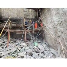 劈裂機應用于不能爆*作業(yè)并要求產量高、工期緊等技術難度大的土石方工程,東莞盤古斧限公司生產的盤古斧巖石劈裂機鉆孔直徑已達到24厘米以上,鉆孔間隔35米一排,挖機吊裝放入巖石孔中,兩分鐘左右可脹裂開石頭50立方左右,一天輕松破碎堅石上千立方,比使用炮錘+切割機或膨脹破碎劑的方式快十倍以上,且成本低。比用切割機的優(yōu)勢是一臺能頂十臺的效率,降低水電費,噪音和污染改善,工期提前成本降低;比起用膨脹破碎劑的優(yōu)勢是鉆孔直徑大、間隔大,裂縫更大、效果更好、更易于破碎解小,立即見效不用等待、不間斷重復作業(yè),不受雨水和溫度影響,無噴漿和強堿性危害。