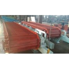 確定要改動的部件,利用大修時間,將頭輪和尾輪拆除,對軸進(jìn)行加工,重新安裝;槽板拆除后,對與輸送鏈條配合的定位孔進(jìn)行加工;行走輪固定座需焊接至槽板上的,在線下加工完成后焊至槽板上;支重系統(tǒng)等可在鏈輪加工期間完成,整個改造過程較為緊湊。