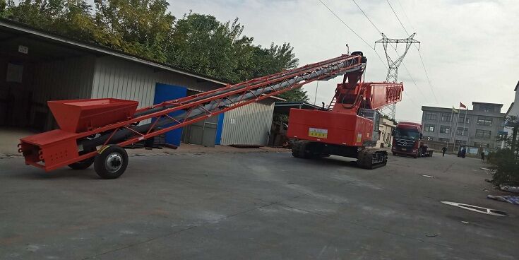 首先將布料桁架放下,在桁架前端用安全凳墊好;依次拆下附件(油管、電氣)、上料膠帶機(jī)、主機(jī)受料斗、配重、油缸、布料膠帶機(jī)、三角支架等。