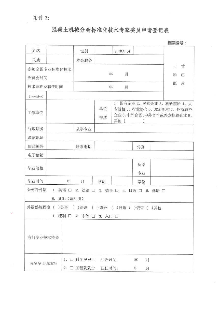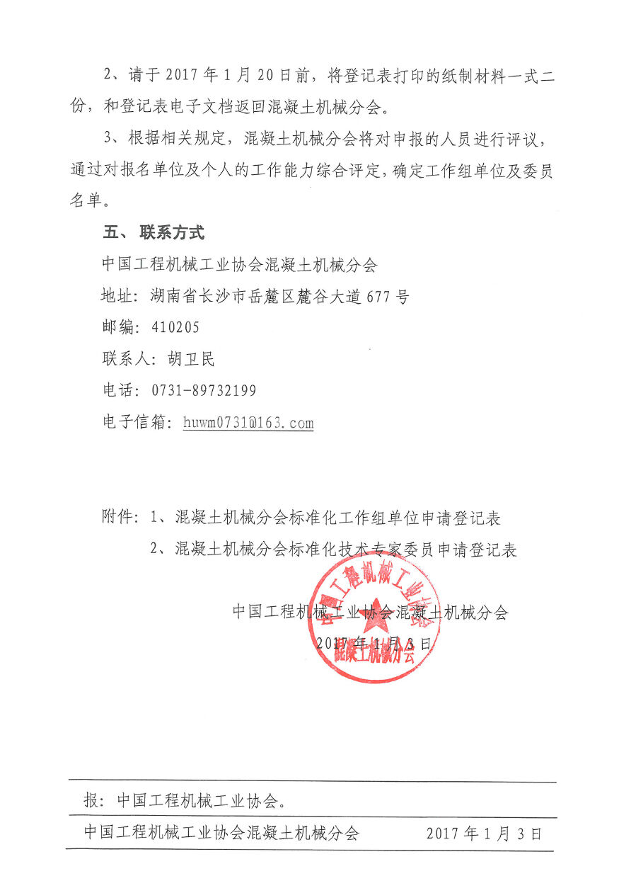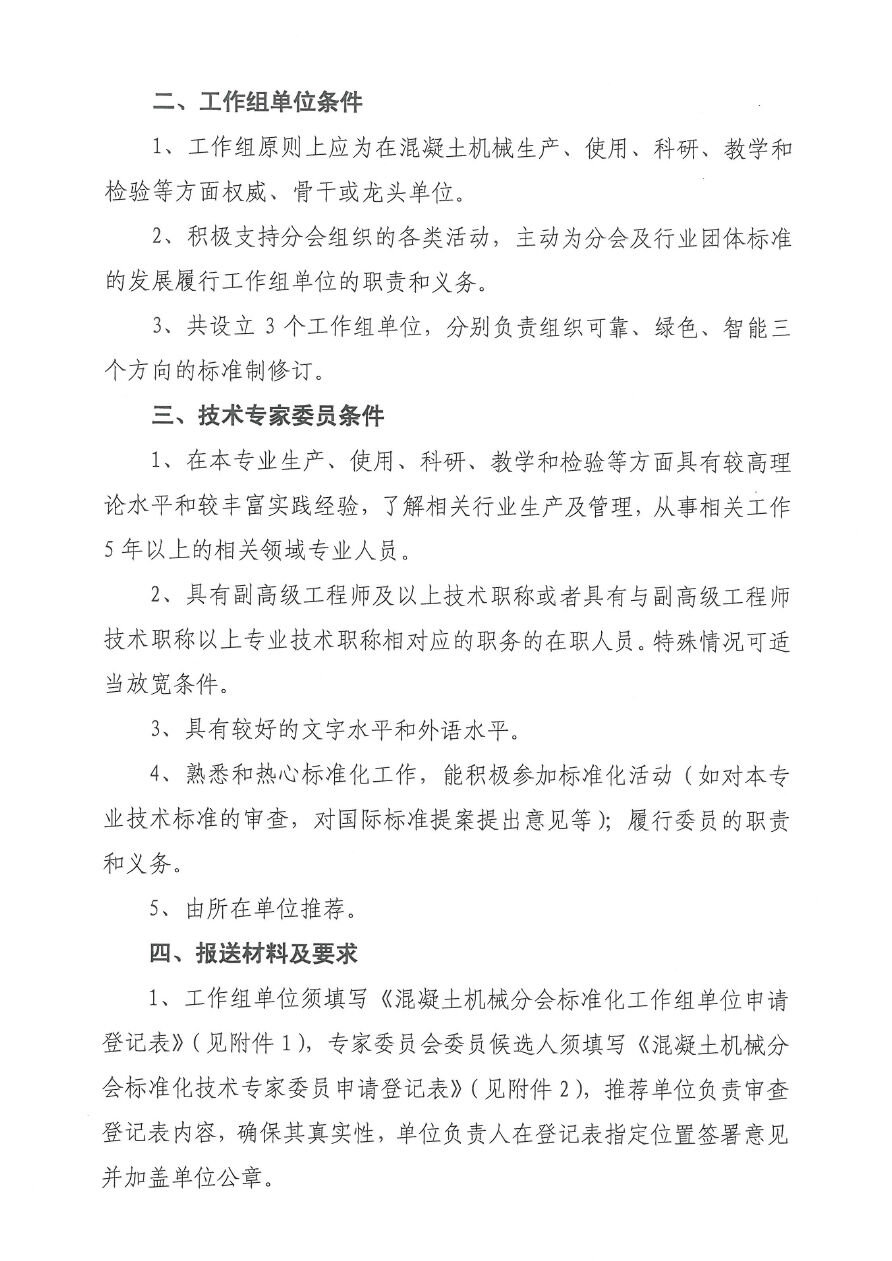 關(guān)于征集中國工程機械工業(yè)協(xié)會混凝土機械分會標(biāo)準(zhǔn)化技術(shù)專家委員及三個工作組的通知