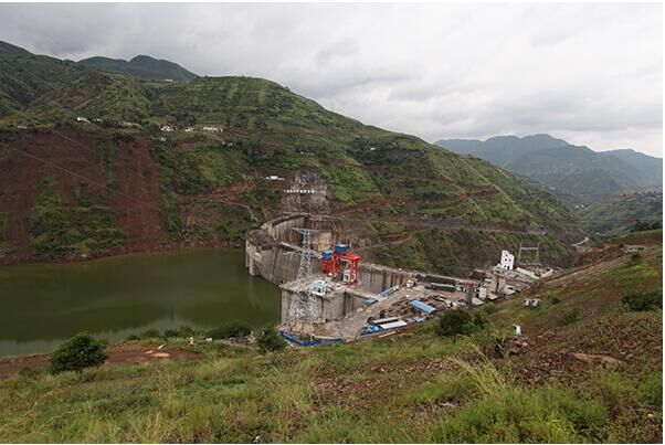 象鼻嶺水電站是我國第二高碾壓混凝土雙曲拱壩,位于貴州省威寧縣與云南省會(huì)澤縣交界處的牛欄江畔,水庫壩高141.5米,碾壓混凝土量達(dá)81萬立方米,正常蓄水位1405米,水庫總庫容2.63億立方米,調(diào)節(jié)庫容1.69億立方米,多年平均發(fā)電量為9.3億千瓦時(shí)。