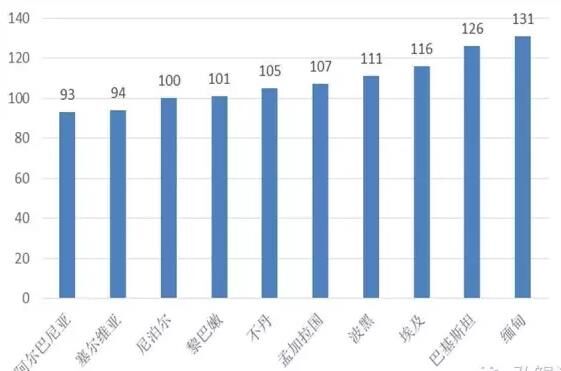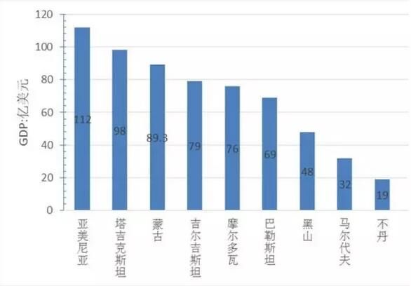 圖2“一帶一路”地區(qū)經濟總量后10名的國家