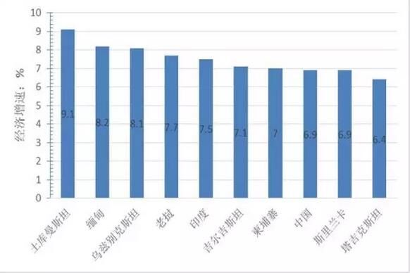 圖3 “一帶一路”地區(qū)經濟增速前10名的國家