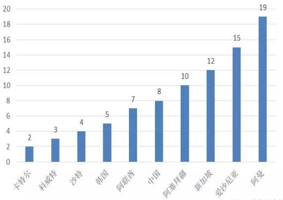 世界經濟論壇發(fā)布的《2015-2016全球競爭力報告》,用法律和行政架構、基礎設施、宏觀經濟環(huán)境、衛(wèi)生和基礎教育、高等教育和培訓、市場效率、勞動力市場效率、金融市場發(fā)展、技術、市場規(guī)模、商業(yè)環(huán)境完備性、創(chuàng)新12個指標對全球140個國家和地區(qū)的競爭力進行了評估,并對12個指標賦值加權后,得出各國的綜合競爭力排名?!耙粠б宦?/span>”沿線66個國家中,有53個國家的競爭力數(shù)據在此報告中體現(xiàn)(詳見附表2)。排名位于前70名(140個國家,70名為世界平均水平)的國家有35個,其中新加坡、日本、卡特爾、阿聯(lián)酋、馬來西亞、沙特、韓國、以色列、中國、愛沙尼亞的排名在“一帶一路”沿線國家中位于前10名,在全球的排名分別為第2名、第6名、第14名、第17名、第18名、第25名、第26名、第27、第28名、第30名;中國排名靠前的主要因是宏觀經濟環(huán)境良好、市場規(guī)模大,其余10個指標排名均在30名以后;位于后70名的國家31個,其中阿爾巴尼亞、塞爾維亞、尼泊爾、黎巴嫩、不丹、孟加拉國、波黑、埃及、巴基斯坦、緬甸的排名在“一帶一路”沿線國家中位于后10名,在全球的排名分別為第93名、第94名、第100名、第101名、第105名、第107名、第111名、第116名、第126名、第131名??傮w上看,“一帶一路”沿線國家競爭力在全球排名分布比較靠后,整體競爭力能力有待提升。